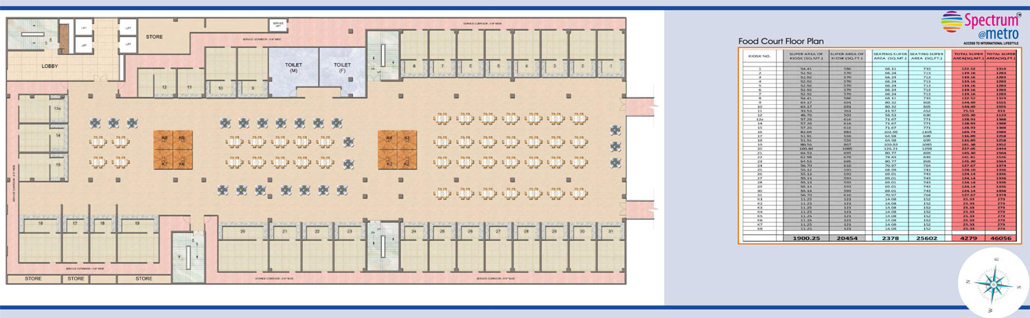 Spectrum Metro is offering food court spaces – A gastronomical delight! Sprawling across an area of approx. 46000 sq.ft. Spectrum Metro Food Court occupies the entire third floor with an attractive brand mix of quality.