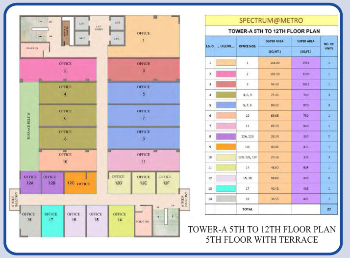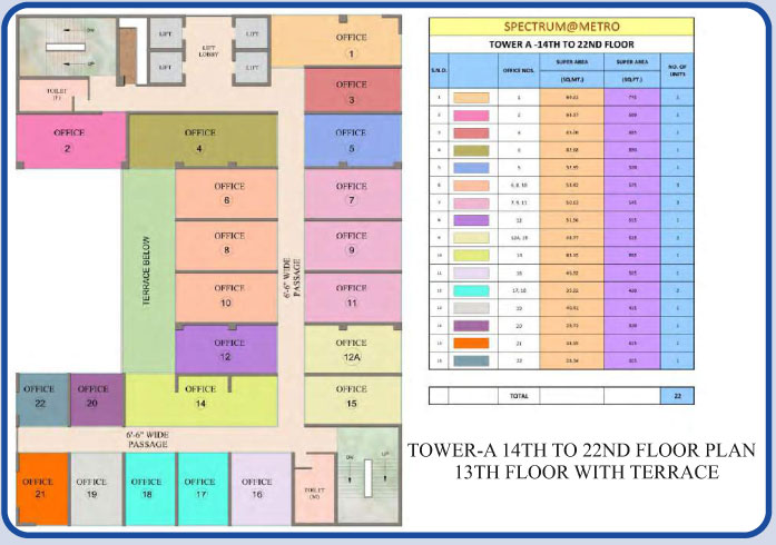 Spectrum Metro office spaces are housed in an all side open building to stimulate the work culture in a consistent way. The office spaces are elegantly built and designed to meet multifaceted business requirements.