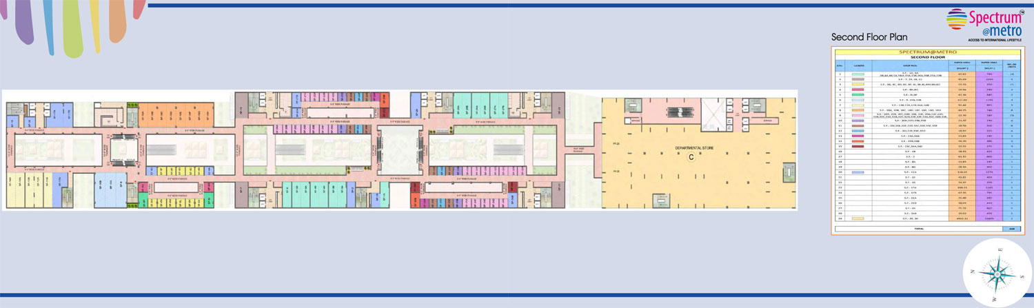 Designed with an idea of developing hypermarket with high visibility brands throughout five floors, Spectrum Metro retail spaces mark a significant shift from traditional retail outlets. Owing to high tech technological design and architecture.